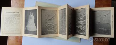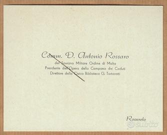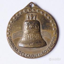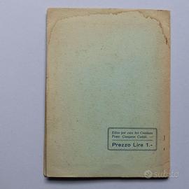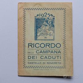 Stupendo lotto di tre pezzi originali riferiti alla Campana dei caduti di Rovereto. A) 1925 (anno del battesimo e inaugurazione della prima campana), ricordo della Campana dei Caduti, Castello di Rovereto (tipografia Carlo Tomasi Rovereto): libretto souvenir copertina in cartoncino azzurro con stampa monocroma in blu, interno a fisarmonica stampato in bianco e nero su una sola facciata, con cenno descrittivo e 7 foto della campana, copertina mm 170 X 126 circa (chiuso), interno mm 145 X 110 circa (ripiegato). Condizioni come da foto: la copertina presenta ai margini aloni, scolorimenti e macchie di umidità, l’interno, già incollato su un lato, ora è scollato ma perfetto; B) cartoncino da auguri del rettore (e ideatore della Campana) don Rossaro: Comm. D. Antonio Rossaro / del sovrano Militare Ordine di Malta / Presidente dell’Opera della Campana dei Caduti / Direttore della Civica Biblioteca G. Tartarotti / Rovereto. Dimensioni mm 118 X 93, carta inscurita, perfetto; C) medaglia in bronzo con frase di papa Pio XII, probabilmente prodotta dopo la seconda guerra mondiale, diametro mm 32,30 circa (appiccagnolo escluso), ottime condizioni come da foto. Vendita da privato. Non si accettano restituzioni; vendita senza garanzia ue. Presente su più piattaforme e su più gruppi.