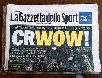 La Gazzetta dello Sport immortala l’attimo che ha fatto alzare in piedi tutto lo Stadium: Cristiano Ronaldo sospeso in aria, muscoli tesi, occhi concentrati, mentre segna la rovesciata più iconica della storia del calcio moderno. Non è solo un gol: è un gesto atletico, tecnico e spettacolare che ha conquistato anche i tifosi bianconeri e ha vinto il titolo di Gol della Stagione 2017/2018 UEFA.