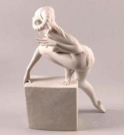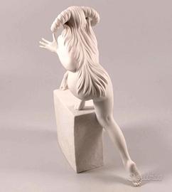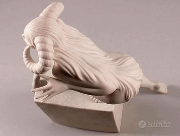 RARA Statuina Ariete - Aries è una statuetta simbolo di coraggio e forza. Questo Ariete è una delle statuette della serie Zodiaco di Royal Copenhagen. Si trovano copie in resina, Le statuette sono disegnate dalla famosa artista danese Christel Marott e realizzate in porcellana Bisquit, aveva solo diciassette anni quando debuttò come illustratrice di riviste e continuò a illustrare settimanali e riviste di moda danesi e straniere per tutta la vita. Christel divenne sinonimo delle sue provocanti ragazze dalle gambe lunghe e della loro eccezionale e vibrante sensualità, al tempo stesso sobria e travolgente. Questo lungimirante ideale di ragazza finì per impreziosire libri per bambine, bambole di carta e modelli di moda in tutto il mondo, comprese riviste come Vogue e Harpers Bazaar.La sua espressione elegante la riverso nella creazione artistica di creature in porcellana finissima. Non si tratta di una copia in poliresina.