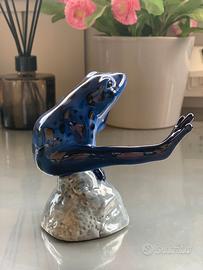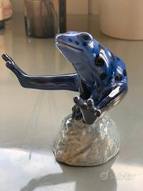 RARA figura Royal Copenhagen di Rana PORTAFORTUNA, raffigurata nell'atto di saltare la cavallina, tra tutte le cose. Questa figura è una delle quattro statuette della serie Good Luck Frogs di Royal Copenhagen.