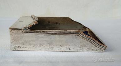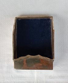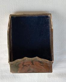 Elegante portacorrispondenza o porta biglietti da visita da scrivania Royal Sheffield. Risalente al 'l'epoca Vittoriana. - Realizzato in metallo bagnato nell'argento con bellissima patina. - Design classico con dettagli lavorati. - Interno foderato in tessuto blu. - Misura cm. 16X12X4