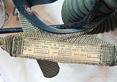 Rarissimo ed interessante casco da volo da Ufficiale pilota dell’Aeronautica Militare italiana modello anni ’50, appartenuto al Colonnello EUGENIO GEYMET. L’affascinante cimelio è stato fatturato in fibre di vetro e visiera con sistema a molle, maschera e tubo ossigeno in gomma nonché connettori (vecchissimo tipo vedasi giuste immagini del “jack”) per cuffie integrate nel casco. Pertanto “completo” di tutti i suoi accessori “coevi” originali. In particolare questo casco, fornitura datata 1953 (vedasi targhetta cucita), Geymet lo utilizzava all’epoca per volare con gli aerei militari modelli “AERMACCHI MB-323”, in forza in quegli anni all’arma del cielo italiana. Infine, sul casco in argomento, come “tradizione” dei piloti militari vuole, oltre alla decal del fregio della A.M. frontale, reca su un lato quella relativa al cognome del pilota che lo utilizzava, essendo lo stesso dotazione d’equipaggiamento personale del pilota. Inutile aggiungere ulteriori parole su questo spettacolare cimelio aeronautico, che si presenta in "OTTIME" condizioni di conservazione, senza rotture, mancanze e/o difetto alcuno, ancora perfettamente funzionante. Misure: taglia “MEDIUM”.