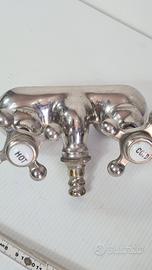 rubinetto primi del 900 acqua fredda e calda in ottone e porcellana completo di ghiere per il fissaggio rubinetti liberi non bloccati