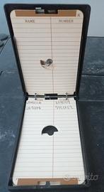 Rubrica telefonica vintage Teledial funzionante (sono scritti alcuni nomi con numeri di telefono) Indice telefonico vintage Teledial, un accessorio d'epoca utilizzato per annotare e ritrovare rapidamente i numeri di telefono. Funzionamento: Presenta un disco rotante simile a quello dei vecchi telefoni a disco, utilizzato per selezionare i nomi