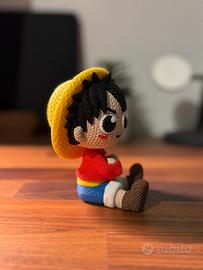 Splendida miniatura di Rufy (Luffy) di One Piece, realizzata con un particolare effetto crochet che ricorda l’uncinetto.