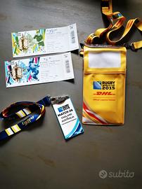 vendo in blocco quanto in foto, vari oggetti Mondiali Rugby world Cup Inghilterra 2015, 2 biglietti, 1 pass hospitality Twickenham, programmi partite coppa del mondo, ecc
