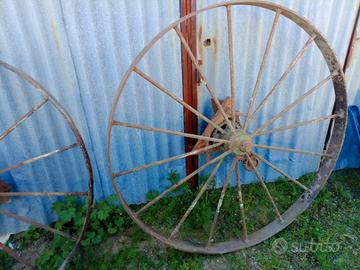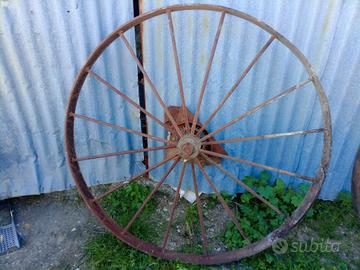 coppia di ruote in ferro forgiate a mano fine 800 ottime x esposizione anche singole 150 cad oppure 200 la coppia x info chiedete misurano lunghezza 1,28 larghezza 1,28 spessore 8 cm spedisco in zona o da ritirare a carico vostro