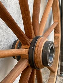 Coppia di Ruote il legno di nuova fattura con gomma piena, altezza cm 68 con mozzo stretto, comprese di assale, realizzate per progetto di carretto per gelati, ideali anche per calesse.