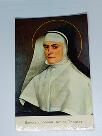 Santa Giovanna Antida Thouret, suora fondatrice delle Suore della carità: Vecchio santino anni 50, molto raro + libretto biografia del 1955, raro + santino foto + santino cartolina. Buono stato di conservazione.