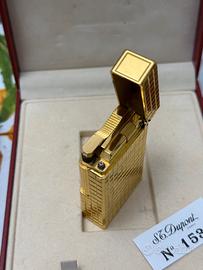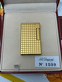 Splendido accendino S.T. Dupont originale, placcato in oro, con la prestigiosa ed elegante lavorazione "Clous de Paris" (motivo a piccoli scacchi). Un pezzo di altissima classe, perfetto per collezionisti esigenti.