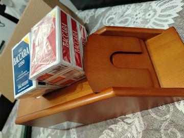 Sabot nuovo mai usato in legno color mogano, più carte dal negro plastificate extra 6 confezioni