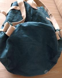 Bellissima sacca zaino originale vintage anni 90 Mulino Bianco,un gadget icona di quegli anni in tessuto verdone con finitura in corda , chiusura con fibbia e rinforzo posteriore in pelle , cordoncino con clip regolabile.Nuovo perfetto in ogni sua parte come era in origine, tutto visibile in foto.
