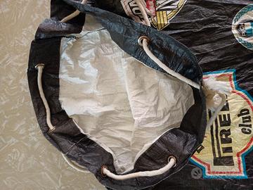 Sacco zaino vintage in materiale leggero sintetico, con chiusura a cordone. E’ originale degli anni 70 ed è decorato con vari marchi: Moto 2T Racing Olio Fiat, Laverda, Motor Bike Pirelli Club, Maico, Harley Davidson, Puch Frigerio, Moto Villa Italia, M, KTM, Ancillotti Motor Cycles Firenze Italy, Gori Motorcycle, Suzuki, Simonini Moto, Moto Morini, Fantic Motor Racing Team, Garelli, Moto Guzzi, Ducati, Magneti Marelli spark club, Benelli, Moto SWM world champion team. Spedisco con Poste Italiane.