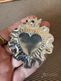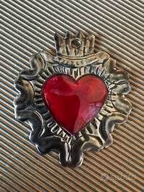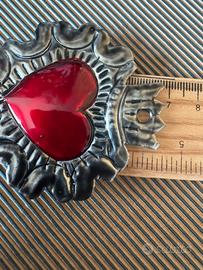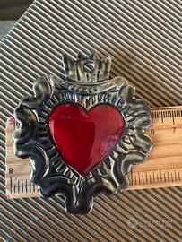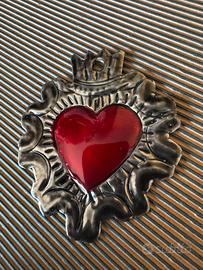 Cuore sacro ex voto messicano in lamina di ferro battuto a mano e dipinto con smalto rosso. Artigianato originale messicano. Misure in foto. Da appendere o trasformare in ciondolo. #sacrocuore #cuoreexvoto #cuoresacro #exvoto #corazonsagrado #corazon #cuoresacromessico #cuoresacroexvoto #portafortuna #amuleto