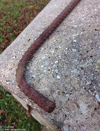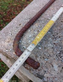 Sagomati di ferro zigrinato diametro cm 1,6 lunghi cm. 84 con risvolto di 10 cm per parte. Numero 8 ferri.