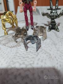 Parti varie di armature, manichino del Toro e personaggi con parti di armatura e manichino di Luxor Artax. Tutto in buone condizioni con segni d'usura visibili in foto.