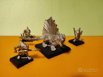 In vendita un modello di Salamandra, Uomini lucertola, in metallo con 3 serventi, della 5 edizione Warhammer fantasy.