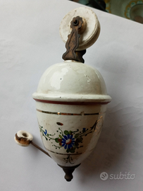 Prezioso e integro saliscendi in ceramica di vecchio lampadario a sospensione primi 900 . finemente lavorato a mano con decori floreali . ceramica.bianco di fondo . peso 1.5 kg con pallini di piombo .