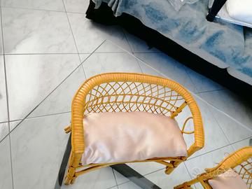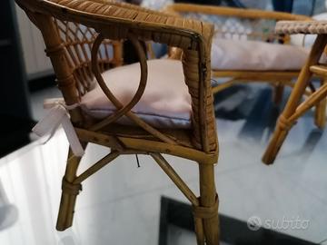 Salottino bambola vintage in vimini in buono stato, anche se usato.