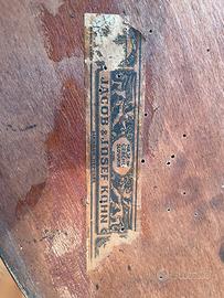 L’etichetta originale superstite è posta sotto il ripiano del tavolino ovale (“Jacob & Josef Kohn – Made in Czecho-Slovakia”).