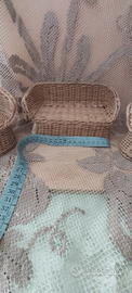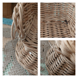 Salottino per bambole in vimini anni 60. Divano, due poltrone e tavolino. Qualche lieve problema che ho condensato nell'ultima foto. Niente che non sia rimediabile con un poco di pazienza. Sempre disponibile per ulteriori foto o informazioni. Euro 20. Pagamento e spedizione esclusivamente tramite tutto Subito.