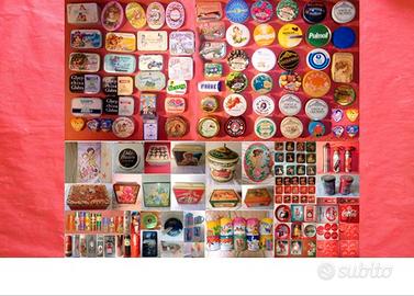 Sempre in latta smaltata, sono disponibili anche tanti altri oggetti: scatole di the, caramelle, cioccolato, menta, pandori/panettoni, sigarette, astucci, e vassoi pubblicitari vari.