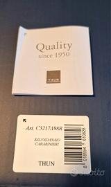 Splendido e raro Salvadanaio Carabiniere Thun, pezzo da collezione in Edizione Limitata realizzato in esclusiva per l'Arma dei Carabinieri. L'oggetto è in condizioni impeccabili. Punti di forza per collezionisti: Numero di serie basso: 0203 (è raro trovare numeri così bassi sul mercato). Full Set Originale: Include la sua scatola blu dedicata con fregio dorato dell'Arma e il certificato di autenticità/qualità originale. Dettagli: Ceramica decorata a mano nel classico e inconfondibile stile Thun. Altezza circa 20,5 cm. Un pezzo di grande valore simbolico e decorativo, perfetto come regalo di prestigio o per arricchire una collezione privata di oggettistica militare o Thun. Spedizione con imballaggio ultra-protettivo.