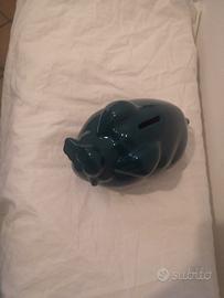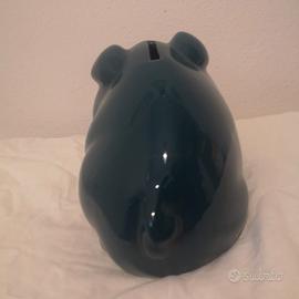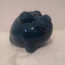 Bellissimo salvadanaio in ceramica (money box - piggy bank) color petrolio, perfettamente intatto e senza crepe o rotture.