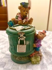 Delizioso salvadanaio da collezione orsetti vintage di resina, fatto e dipinto a mano, mod.