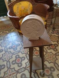 salvadanaio del 1963.inpura ceramica,lavorato a mano,raffigurante.la moneta delle vecchie 100 lire,cn inciso la felpa minerva..un affare per collezionisti!