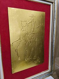 Splendida e rara trasposizione del "Picador" di Salvador Dalì, prodotta in Francia nel 1983 su una lastra di rame, l'opera è stata restaurata e rivestita frontalmente con foglia oro con particolare lavorazione satinata.