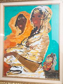 In vendita splendida opera del Maestro Salvatore Fiume (1915-1997) dal titolo "Le Hararine". Si tratta di una preziosa serigrafia polimaterica d'après realizzata su broccato, che riproduce fedelmente la matericità e la vivacità cromatica tipica delle opere africane dell'artista.