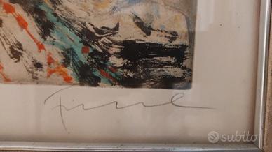 Multiplo di Salvatore Fiume, numerato 130/150, firmato in basso a destra, misure: 48x68 - ingombro totale (con cornice) 68x88 Opera con vetro, pertanto forse è meglio valutare un ritiro/consegna a mano. Io mi posso spostare da Rovereto (TN) fino a una trentina di chilometri circa, con piccolo rimborso spese viaggio. ATTENZIONE: purtroppo in un trasloco è andata smarrita la documentazione di autenticità, per questo motivo il valore di vendita è molto basso. Mi sento di poter garantire l'autenticità dell'opera, ma comprendo che possano nascere delle perplessità. In ogni caso, l'opera è a disposizione per 170,00 euro.