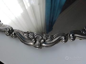 Vendo a prezzo di realizzo elegantissimo Salver da centrotavola o portabottiglie antico, in metallo argentato, ottimamente realizzato. L’oggetto antico, presenta piccoli difetti, visibili nelle foto, ma nell’insieme è ben conservato.