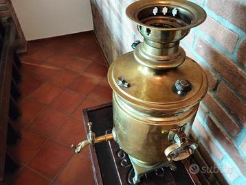 Splendido Samovar russo in ottone lucido del 1903 , data con punzone e stemmi Nicola II Romanov