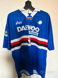 Vendo bellissima maglia Match Worn Sampdoria stagione 98/99 indossata da Giovanni Piredda con il nr 29. In quella stagione due presenze: - esordio in coppa Italia contro il Bologna - seconda presenza in campionato con il Bari Maglia ASICS in ottime condizioni e da collezione con solo piccoli pallini sul retro e toppa lega calcio leggermente scollata per via del tempo.