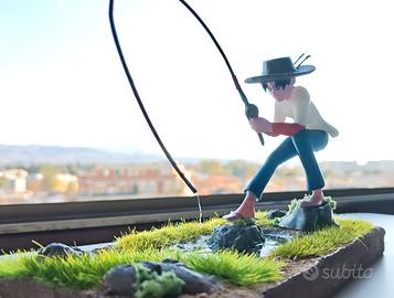 * Soggetto: Figura di Sampei, il ragazzo pescatore, in azione.