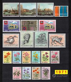 TUTTI i valori emessi dall'amministrazione postale della Repubblica di San Marino dall'inizio del 1971 fino al termine dell'anno 1975.