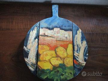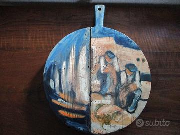 Nr. 3 dipinti su taglieri per la polenta eseguiti a fine anni 90.