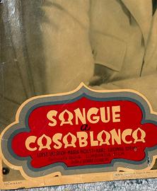 Manifesto cinematografico originale d’epoca del film Sangue a Casablanca, raro esempio di grafica italiana anni ’40 legata al cinema bellico / spy-noir del secondo dopoguerra.