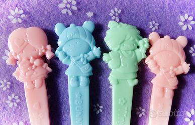 * RISPONDO SOLO ad utenti Verificati e con PIU' ANNUNCI ATTIVI.* SANRIO Vintage 1976 Stecchini Forchettine in SCATOLINA e CONFEZIONE! NO IMITAZIONI CONTEMPORANEE! NO VINTAGE USATO! QUESTO articolo non ha NULLA a che vedere con riedizioni e merchandising SANRIO by SANRIO LICENSE, disponibile in MIGLIAIA DI PEZZI TUTTI UGUALI e di NESSUN VALORE Vintage, Collezionistico e QUALITATIVO. Qui si parla di un oggetto NUOVO ma AUTENTICO VINTAGE ANNO 1976: NON ESISTONO ARTICOLI SANRIO PIù ANTICHI DI QUESTO! UN OGGETTO da collezione DAVVERO PREZIOSO per i più esigenti collezionisti! By SANRIO CO. LTD, JAPAN. Splendida SCATOLINA A CUORE, in plastica trasparente, con 10 STECCHINI in plastica colorata di tutti i personaggi SANRIO! Nella sua CONFEZIONE IN CARTONCINO, decorata, firmata e con bollino. La SCATOLINA è in plastica trasparente, con SEZIONE A CUORE. Un FIOCCO A RILIEVO sul coperchio. Ancora INTATTO l’ADESIVO a fiocco originale. CONTIENE 10 STECCHINI o FORCHETTINE di TUTTI I PERSONAGGI SANRIO: TUTTI QUELLI nati nel 1976! HELLO KITTY, MY MELODY, KIKI e LALA delle LITTLE TWIN STARS, TINY POEM, SMALL PEOPLE, BUNNY&MATTY. SPLENDIDI COLORI PASTELLO. L’oggetto non è solo NUOVO, ma anche COMPLETO della sua SCATOLA IN CARTONCINO, completamente DECORATA, con quadrettatura e disegni di CILIEGIE, le scritte KITCHEN e ‘FRIENDLY PICKS’. - DIMENSIONI SCATOLA: 9,5 x 4,5 x 3,5 cm. ca. SINGOLA FORCHETTINA: 8 cm. CARTONCINO: 10 x 4 x 5 cm. - CONDIZIONI Oggetto da collezione NUOVO DA NEGOZIO, in un INCREDIBILE STATO DI CONSERVAZIONE e perfettamente PULITO. NESSUN DIFETTO, NESSUNA MINIMA IMPERFEZIONE: *49* ANNI e COME APPENA USCITO DALLA FABBRICA. *NON TRATTO E NON HO MAI TRATTATO USATO.* Aggiunta preziosa e irripetibile per i collezionisti di oggetti SANRIO Vintage, rari, originali e MADE IN JAPAN! Sulla scatolina, sul cartoncino e sui singoli stecchini: © 1976 SANRIO CO. LT – MADE IN JAPAN. - SPEDIZIONE con POSTE DELIVERY STANDARD.