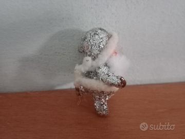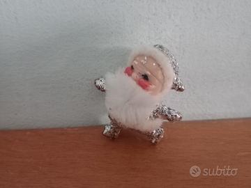 Santa Claus Vintage con corpo in glitter Babbo Natale Vintage in plastica rivestito di glitter argento alto 4,5 cm