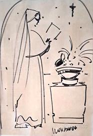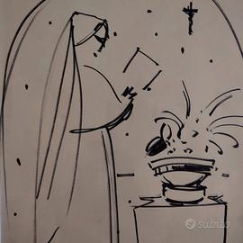 Favolosa opera ad inchiostro su carta degli aa '50 del Maestro Sante Monachesi di cm 50x35.