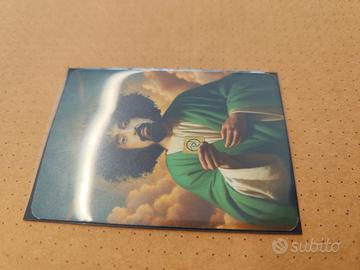 Vendo santino con immagine ispirata all’album Exuvia di Caparezza. Formato 61x91mm, stampato su carta fotografica semi-lucida. Protetto da una sleeve per una conservazione ottimale.