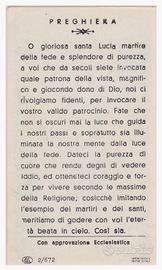 Vendo Santino di Santa Lucia, cm. 10x5.5 ca., Ed. EB serie 2 n.672 con codice a barre, come da foto, a Euro 1.00 + spese di spedizione. (Vedere altre inserzioni; se si acquistano almeno 20 Santini li cedo a Euro 0.50 cadauno)