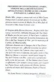 Vendo Santino della Vergine della Riconciliazione, cm. 9.5x6 ca., come da foto, a Euro 1.00 + spese di spedizione. (Vedere altre inserzioni; se si acquistano almeno 20 Santini li cedo a Euro 0.50 cadauno)