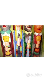 - 4 personaggi: raffiguranti le carte siciliane. (oro, coppe, spade, mazze) Ritenuti antichi portafortuna. Misurano cm 80x17x10 circa cadauno.
