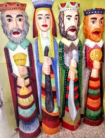 Santoni Carte in legno, realizzati interamente a mano da un unico pezzo di legno, dipinti con colori vivaci. Sono pezzi unici, perfetti per decorare la casa o per collezionisti di artigianato artistico. Firmati dallo scultore dichiarato patrimonio IMMATERIALE VIVENTE UNESCO.