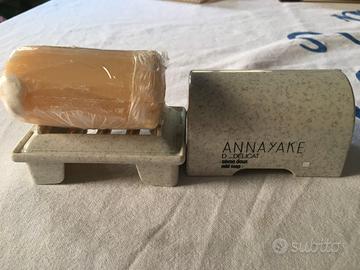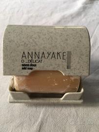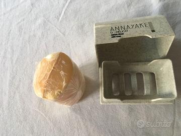 Vendo sapone Annayake vintage delicato 100 g. e relativo portasapone, dimensione 8,5 x 5 x 6,5 cm circa.