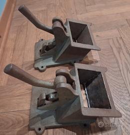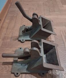 Saracinesca da tramoggia d'epoca, proveniente da mulino, anni '20, in ghisa, altezza 30 cm, larghezza 15 cm, peso 4,2 kg. Prezzo euro 45 cadauno. vintage, industrial design, archeologia industriale